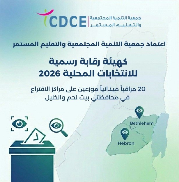تعلن جمعية التنمية المجتمعية والتعليم المستمر عن اعتمادها كـهيئة رقابة رسمية على الانتخابات المحلية لعام 2026