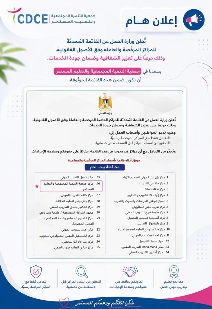 تعلن وزارة العمل عن القائمة المحدثة للمراكز المرخصة